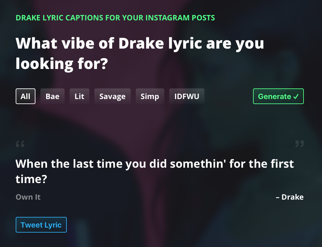 If there is anyone out there like me in the world then you might find this useful. I have had the idea in my iPhone notes for over a year and finally sat down and made it happen yesterday. Thank you to Product Hunt for the platform which allows a silly idea like this to exist π