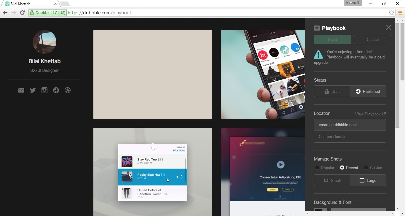 Dribbble is working on a new paid portfolio product called playbook. It's currently free for Pro users.