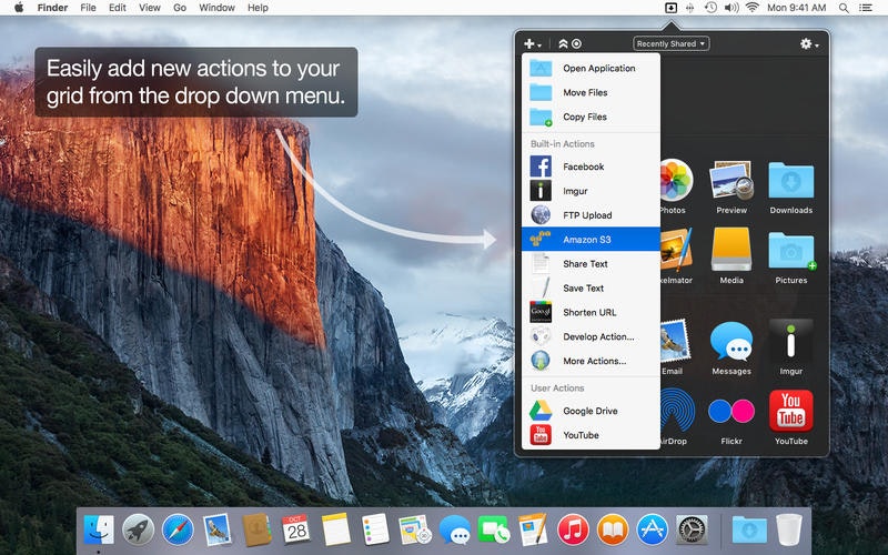Dropzone makes it faster and easier to copy and move files, open applications and share files with many different services.