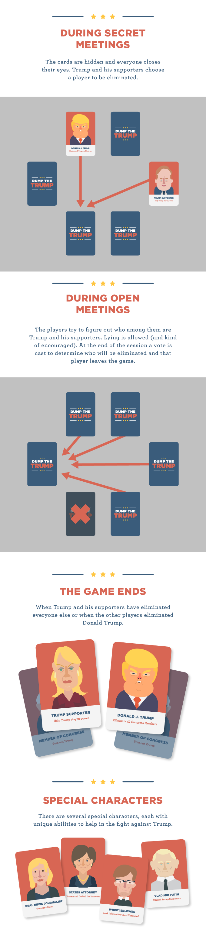 Cool game and all, but I find it fascinating that people can just make a card game about the President of the United States like this without getting backlash! Imagine this game but "Trump" switched with "Obama" and the media would be all over it. It hasn't even been 100 days yet has it?