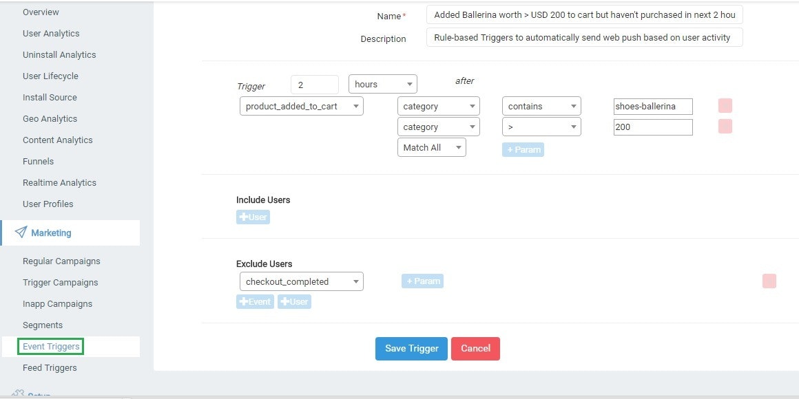 - Segment users based on their activities on your app/website. E.g. inactive users, category viewers, users interacted with brand X.
