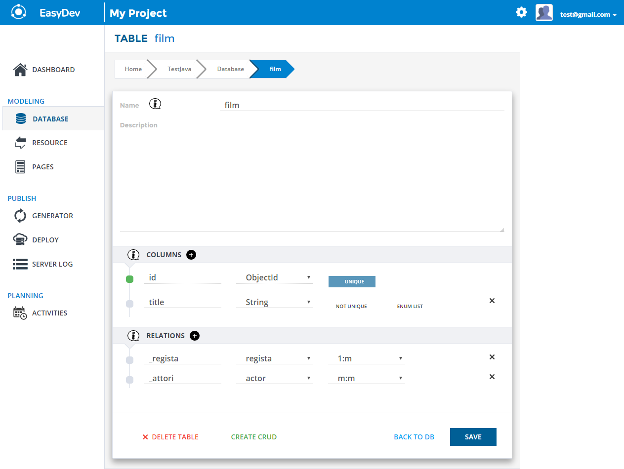 EasyDev was born with the aim of reducing development time for those who create REST websites and web portals. It introduces automation in implementation phase of the software by realizing what the development team ought otherwise to do by hand, generating part of the source code.