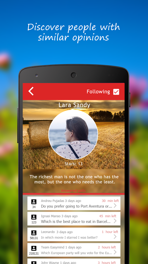 Easymind is a social voting network for Android.