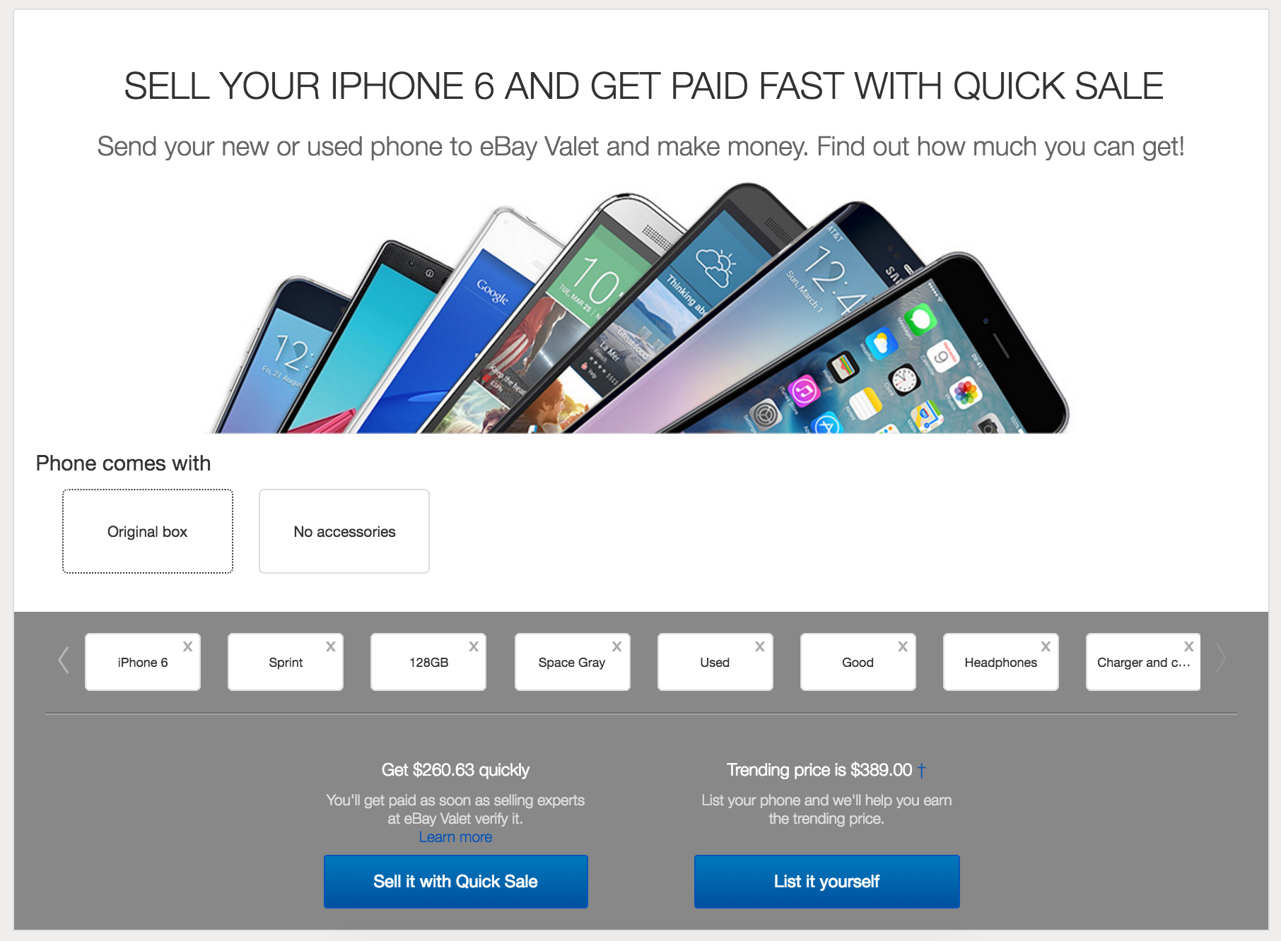 Interestingly, I entered my iPhone details and it quoted me two prices: $260.63 to have eBay Valet do all the work to list and sell it, and $389 if I do it myself. The massive uptick in price encourages me to sell it myself on eBay, which makes me think t… See more