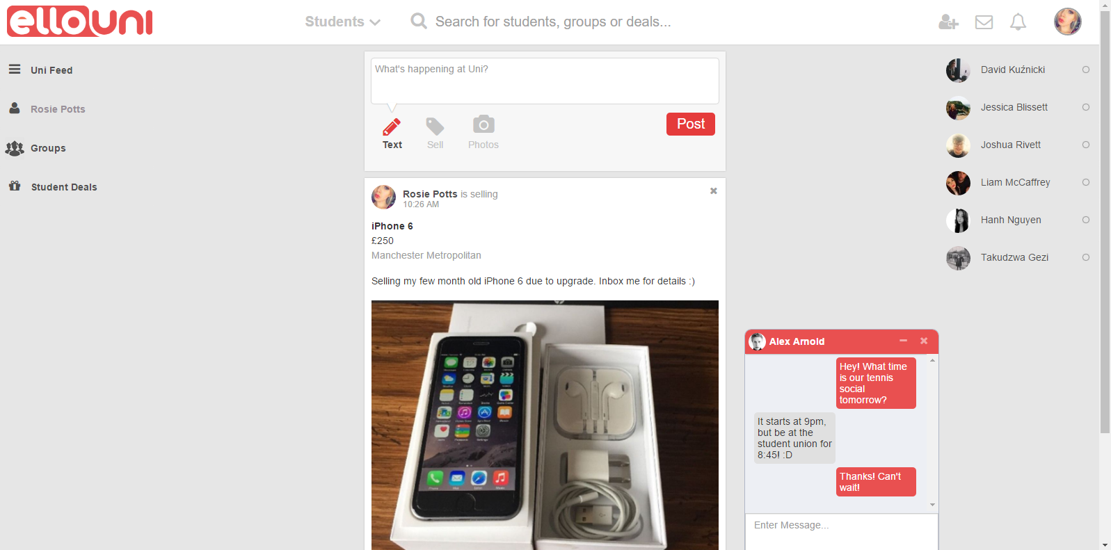 Ello Uni is a private higher education social platform (web and mobile) which helps students transition into the independent University life and optimise their University experience by providing a set of tailored services all in one place. … See more