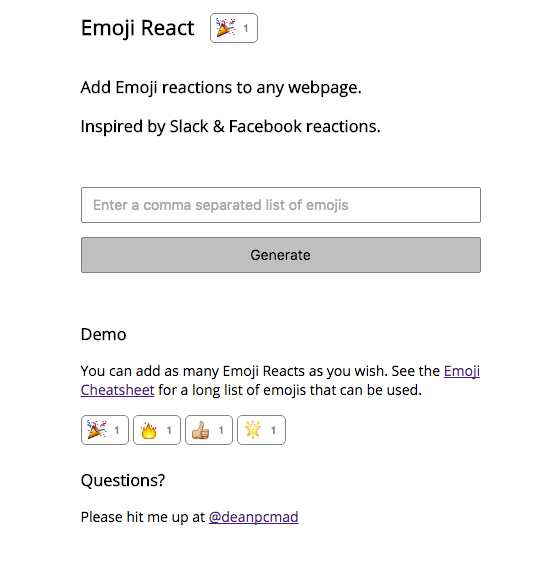 Hey hunters! I wanted to add Emoji reactions to my blog posts for a bit of fun but I couldn't find a site where I could easily embed them. So, I built this project! Let me know what you think or if you have any questions! π₯