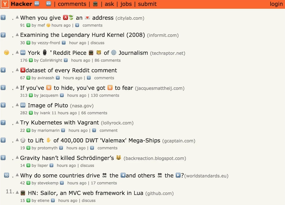 Yeeeahhh, π» this because π©ππ. Here's the Product Hunt homepage, as translated by the Chrome extensions: