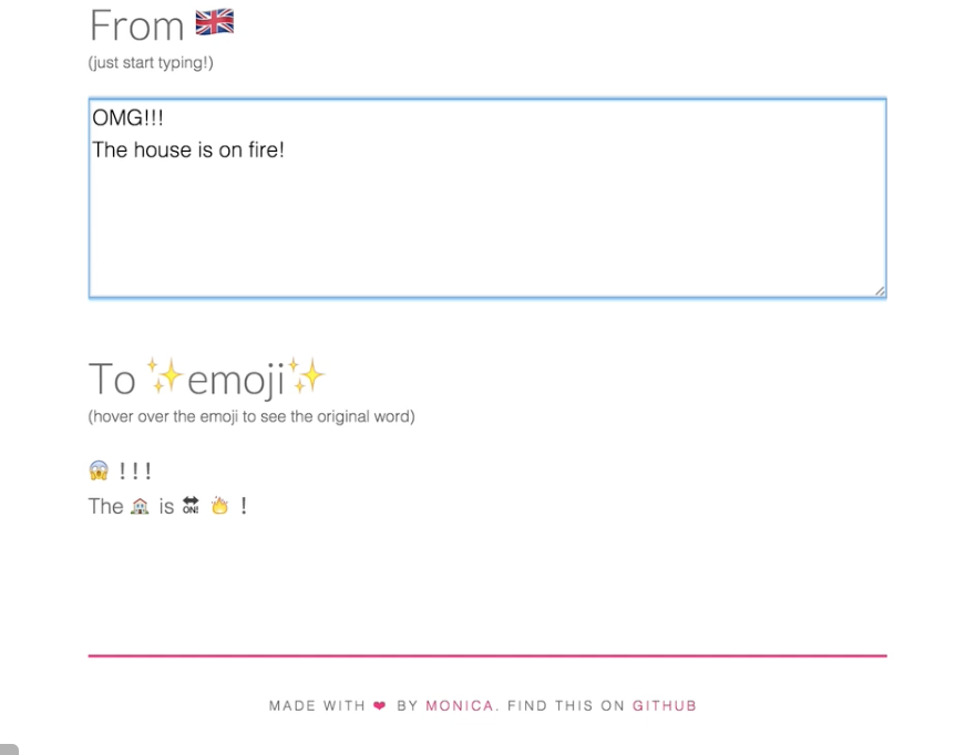 Also check out Moviemoji (movie synopses in emojis), Emoji Type (custom iOS keyboard that auto suggests emojis as you type), and Emojinate (stories translated into 5 emojis) for more emoji-based communication.