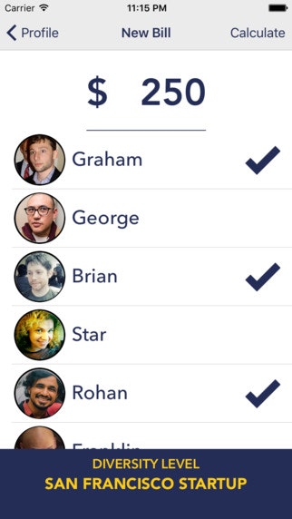 Welcome to Equality- 2.0. This app uses a complex algorithm, Affirmative Fractions, to split your dinner bills. Our built in diversity tracker also lets you see how down you are! Are you really about ending the wage gap? Cheque your privilege. Hate equity? There's something for you too! Protest the app within the app.