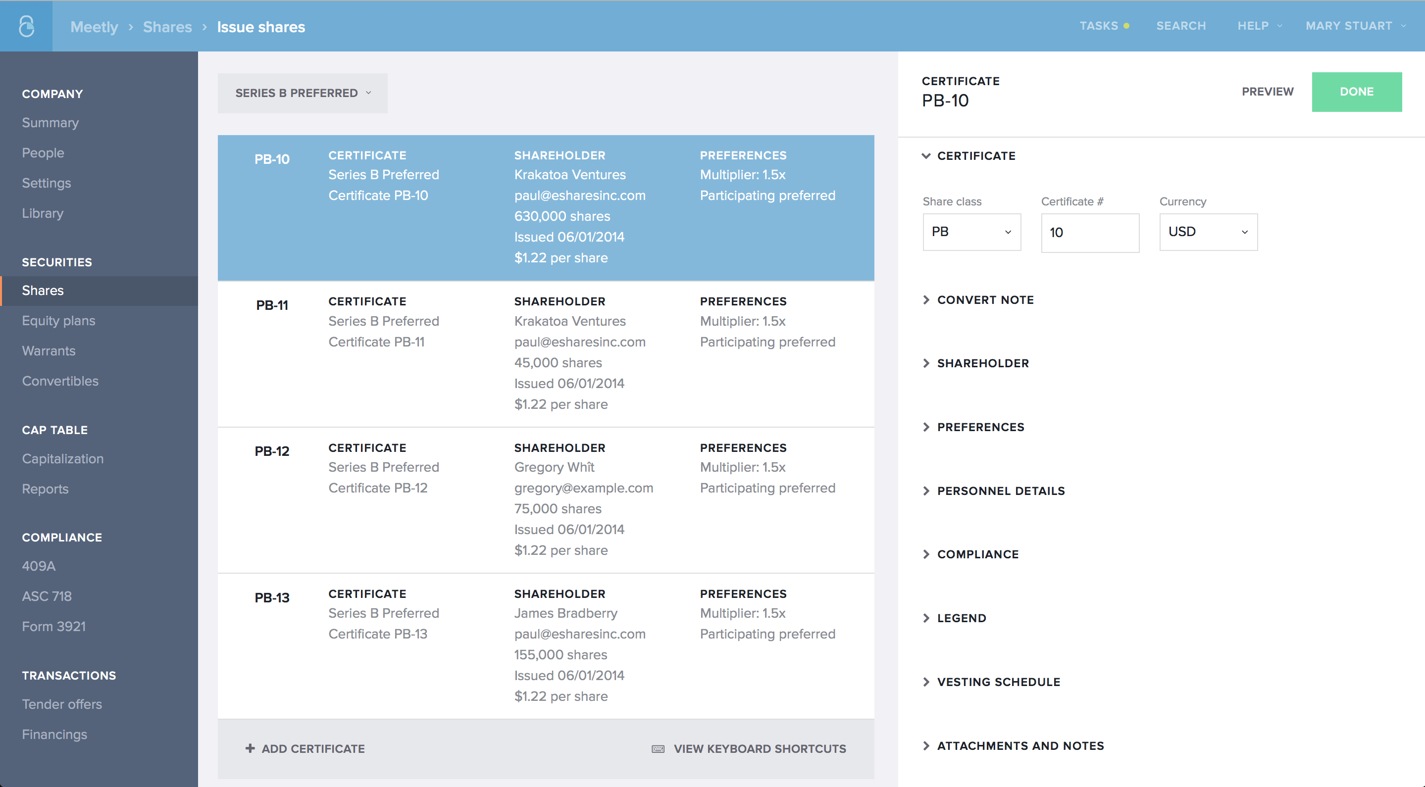 I've been using eShares for some time. It's great! Very useful and easy to manage stocks, options, etc. Their support staff is also amazing. Bonus: great design too.
