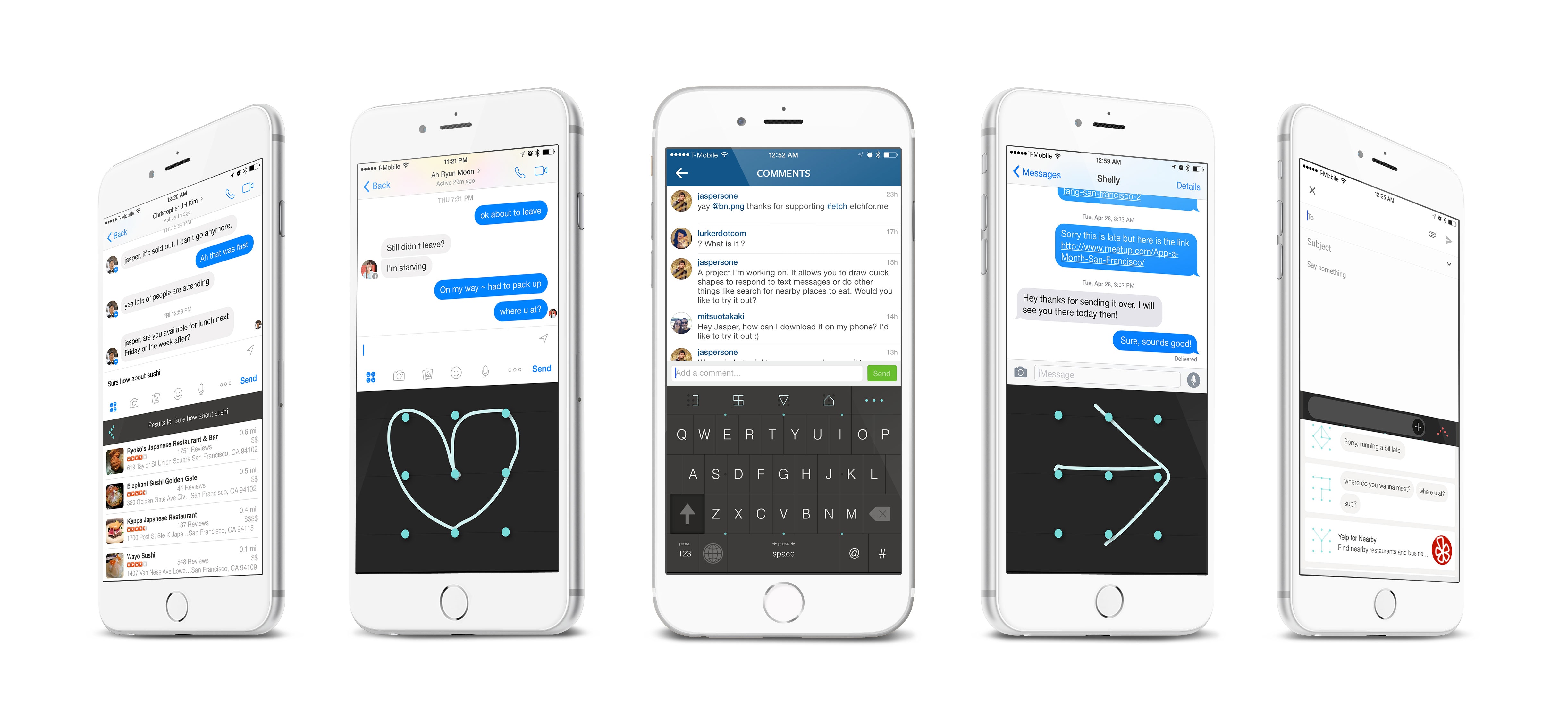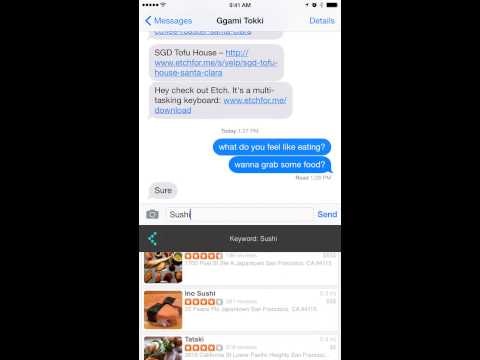 Etch is a gesture based keyboard that allows you to share content and access services by quickly drawing simple shapes. For example, draw a Y to search for restaurants on Yelp or a G to search and share GIFs.