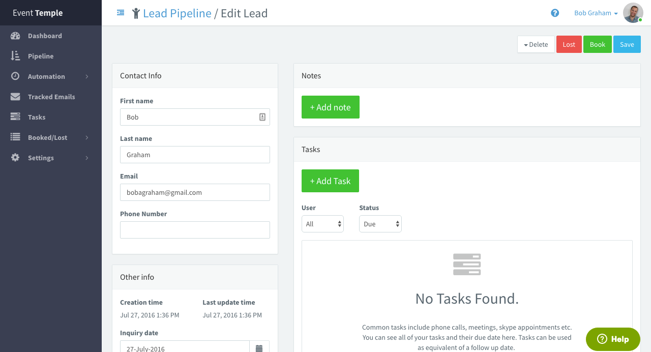 Hey Product Hunt! I'm Bob, we made event temple to solve a pain that I faced as the owner of a DJ company here in Canada. We get a lot of inquiries and I needed a simple way to visually track leads, automatically follow up, track email opens and book more sales. Since we aren't a huge company, we need to use software to replace the work traditionally done by… See more