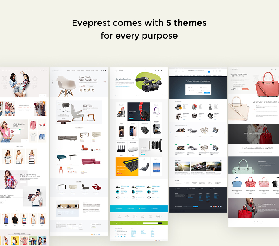 Eveprest is a PrestaShop multipurpose responsive theme aimed to meet each and every of your eCommerce needs.