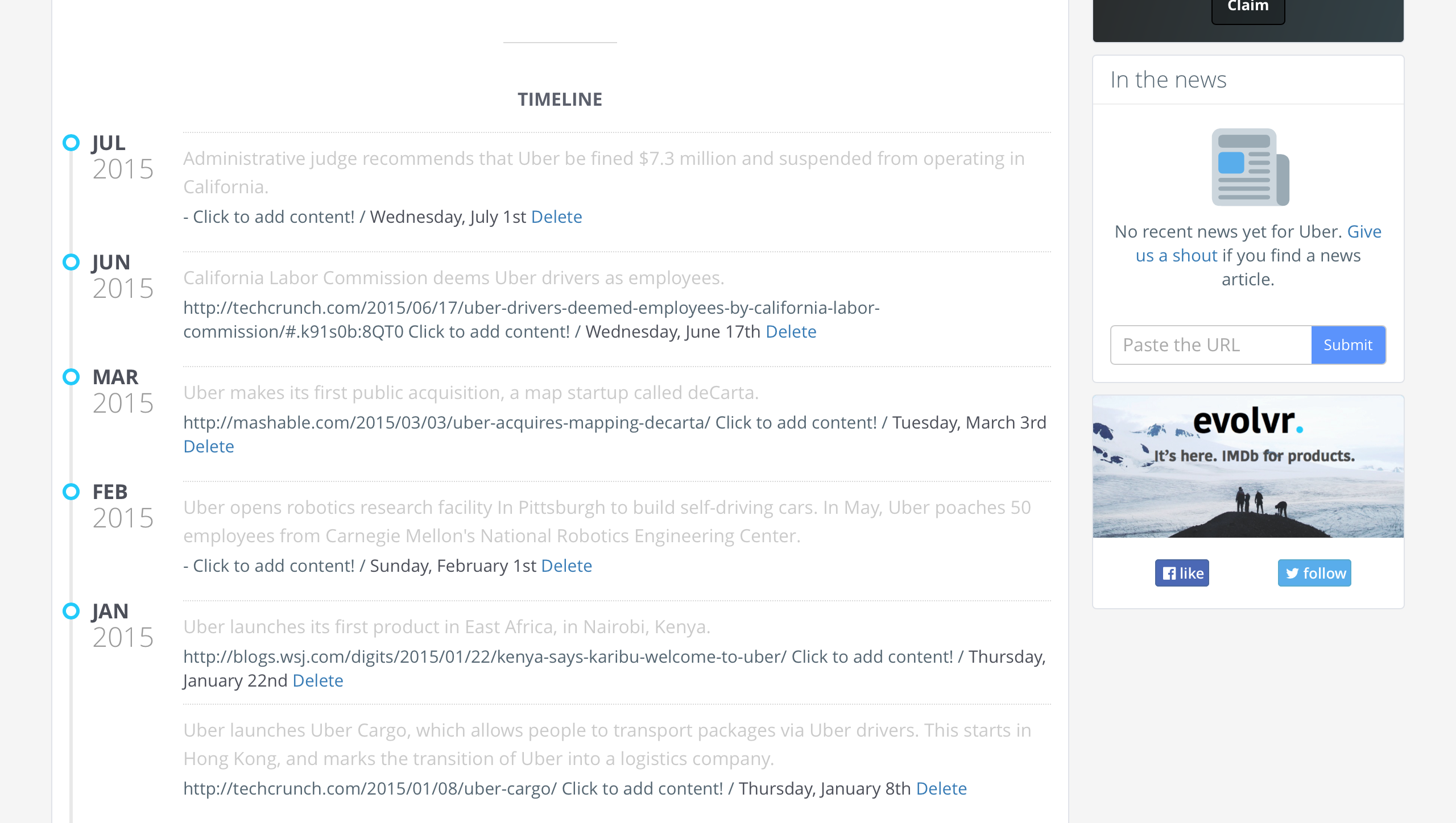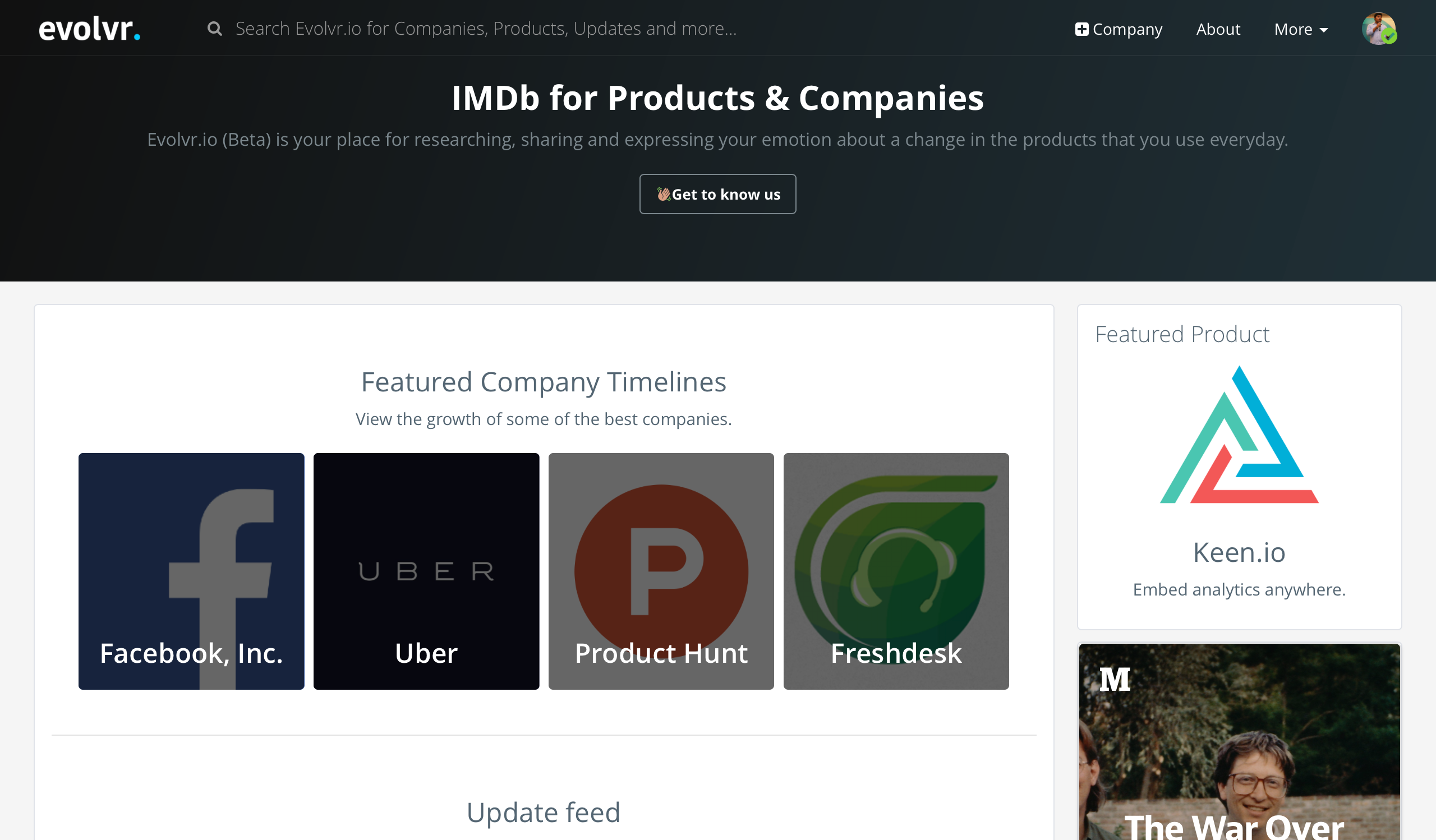 Evolvr.io launching today inspired by IMDB aims to be the most comprehensive resource for information about a company ,its products and the makers behind them. See how each product has evolved over time, which companies or makers use a particular product and their reviews.