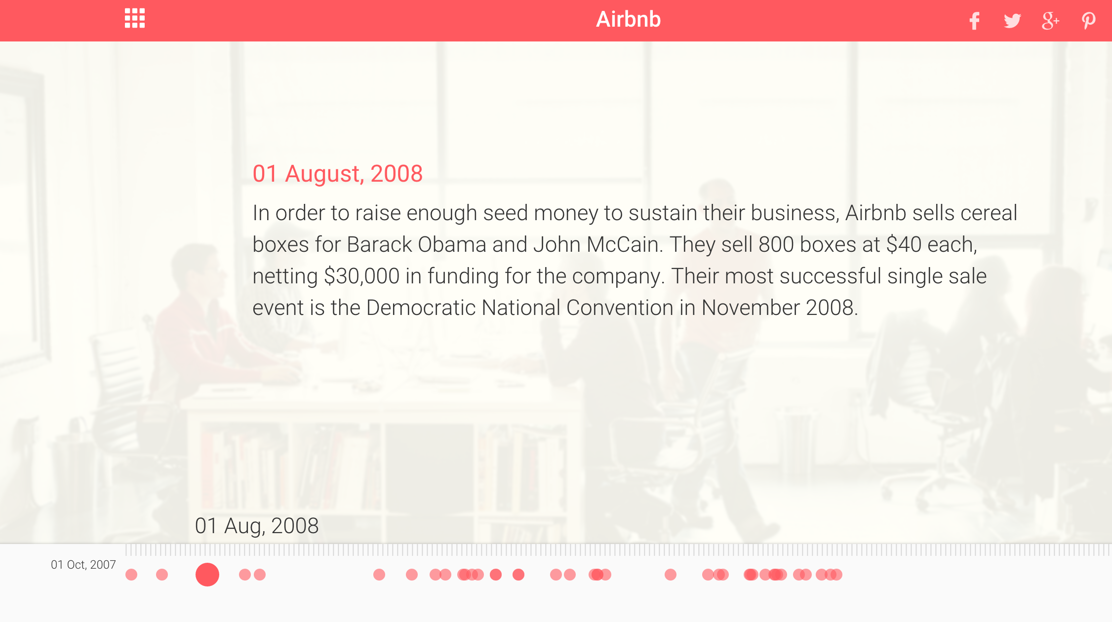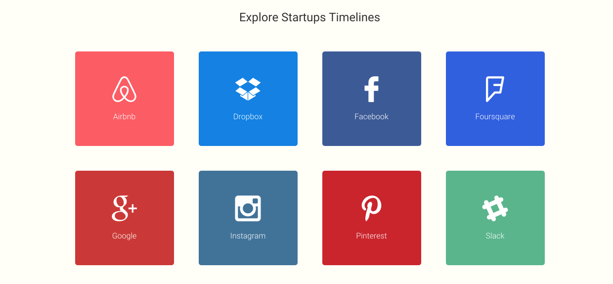There's another product with the same name with animated GIFs of how sites like Facebook, Pinterest, and Product Hunt changed over time. It's also called Startup Timelines. 😜