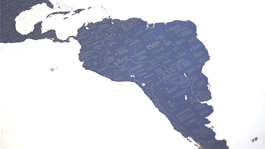 Beautiful wall map filled with fascinating world facts