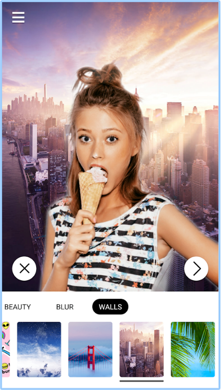 The Android app has the majority of same features as the iOS version, including over 20 most popular backgrounds and support for blur background effect and custom backgrounds.