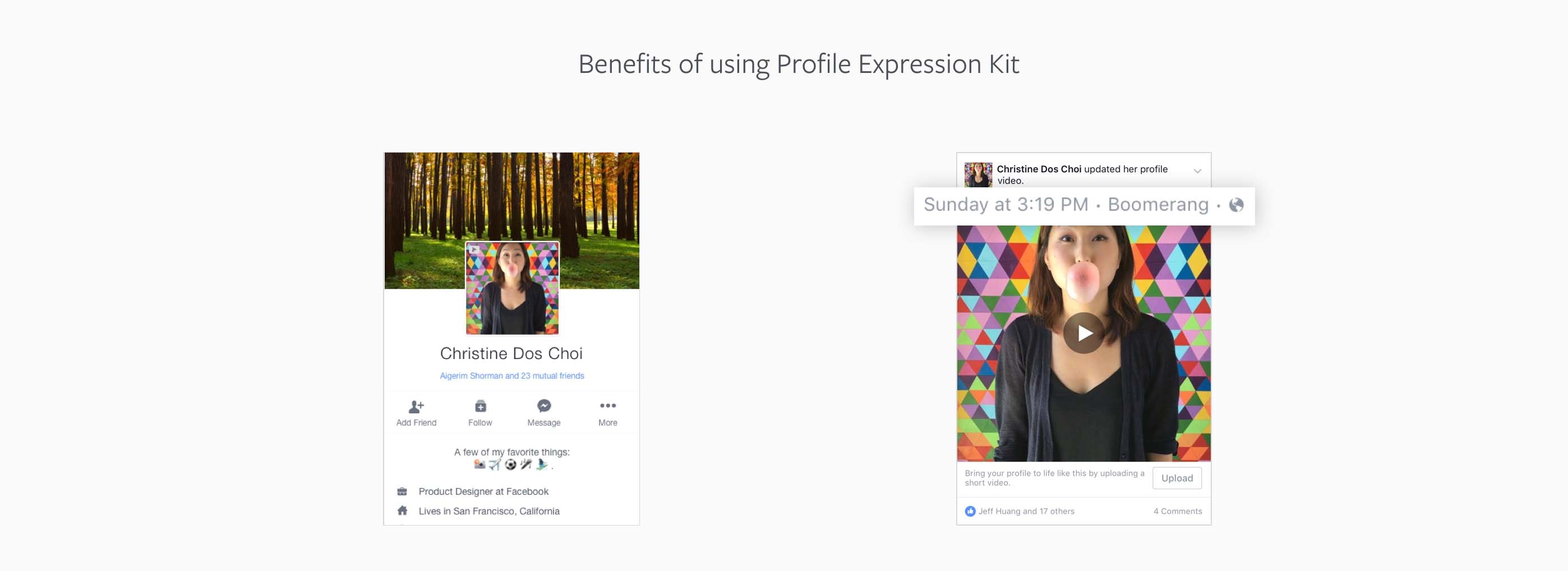 Facebook sees 30 million updates to profiles each day, but it can’t build every tool to keep your photos and videos interesting. So today it’s globally rolling out its Profile Expression Kit to all developers. This makes it easy to add media like Vine videos, Boomerang GIFs, Beauty+ enhanced selfies, MSQRD face filters, Lollicam stickers, and Flixel cinemagr… See more