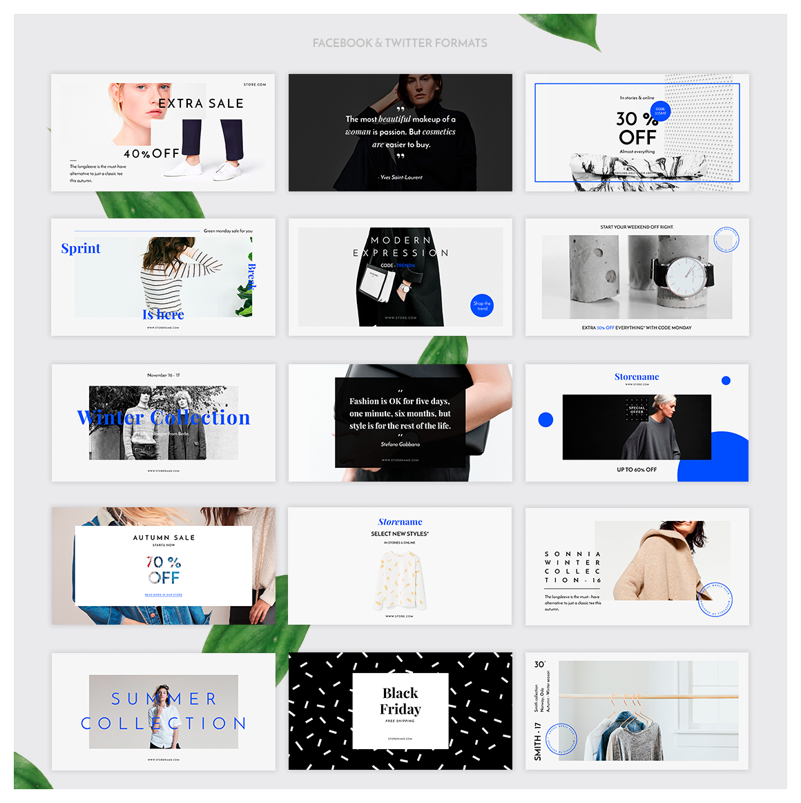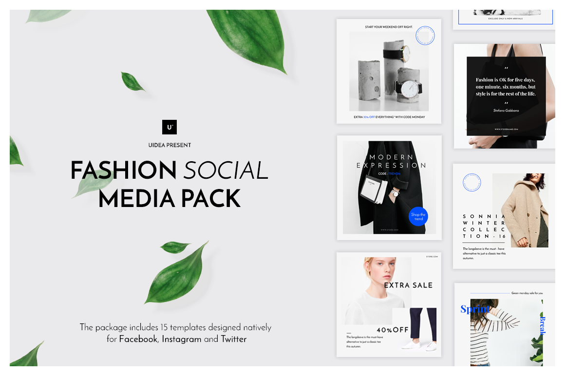 Give your social media accounts a design upgrade with the Fashion Social Media Pack. The package includes 15 templates designed natively for Facebook, Instagram and Twitter. Each of them is easy to edit and customize, all you have to do is replace images with your artwork via Smart Objects and add… See more