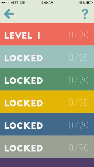 Each level consists of 20 rhyming word riddles. To answer each riddle, find a pair of