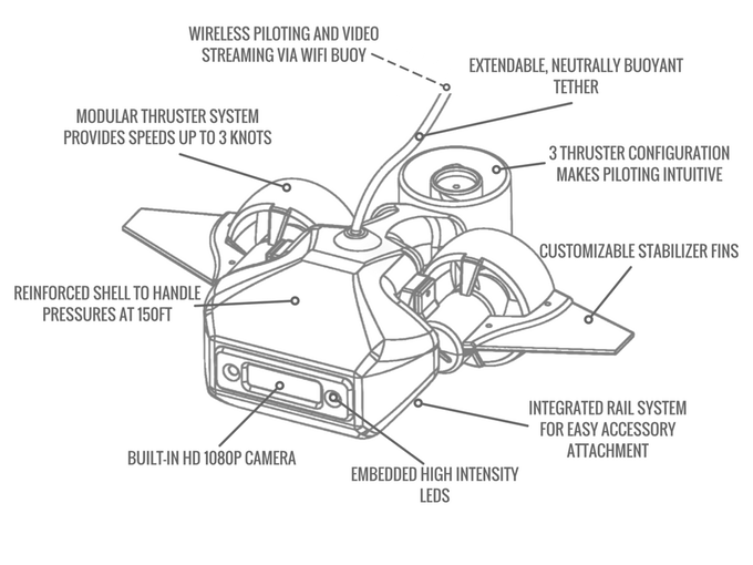 From their Kickstarter page: "At Fathom, we're a group of outdoor enthusiasts, scuba divers, filmmakers, and tech nerds who are passionate about underwater exploration. To share that passion with others, we developed the Fathom One—an HD underwater drone that’s easy to use, highly portable, and fully modular, all for under $600. "