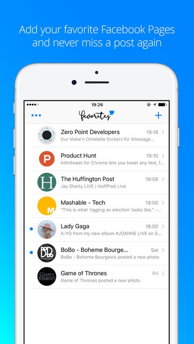 Now that Favorites for iOS is available worldwide, we think it is an excellent opportunity to introduce it to Product Hunt. We wanted an app where you could follow only your favorite Facebook Pages and their posts, stripped from the noise of the news feeds, comments, and likes. Also, we gave to posts a more iOS native feel by making them look as messages. We… See more