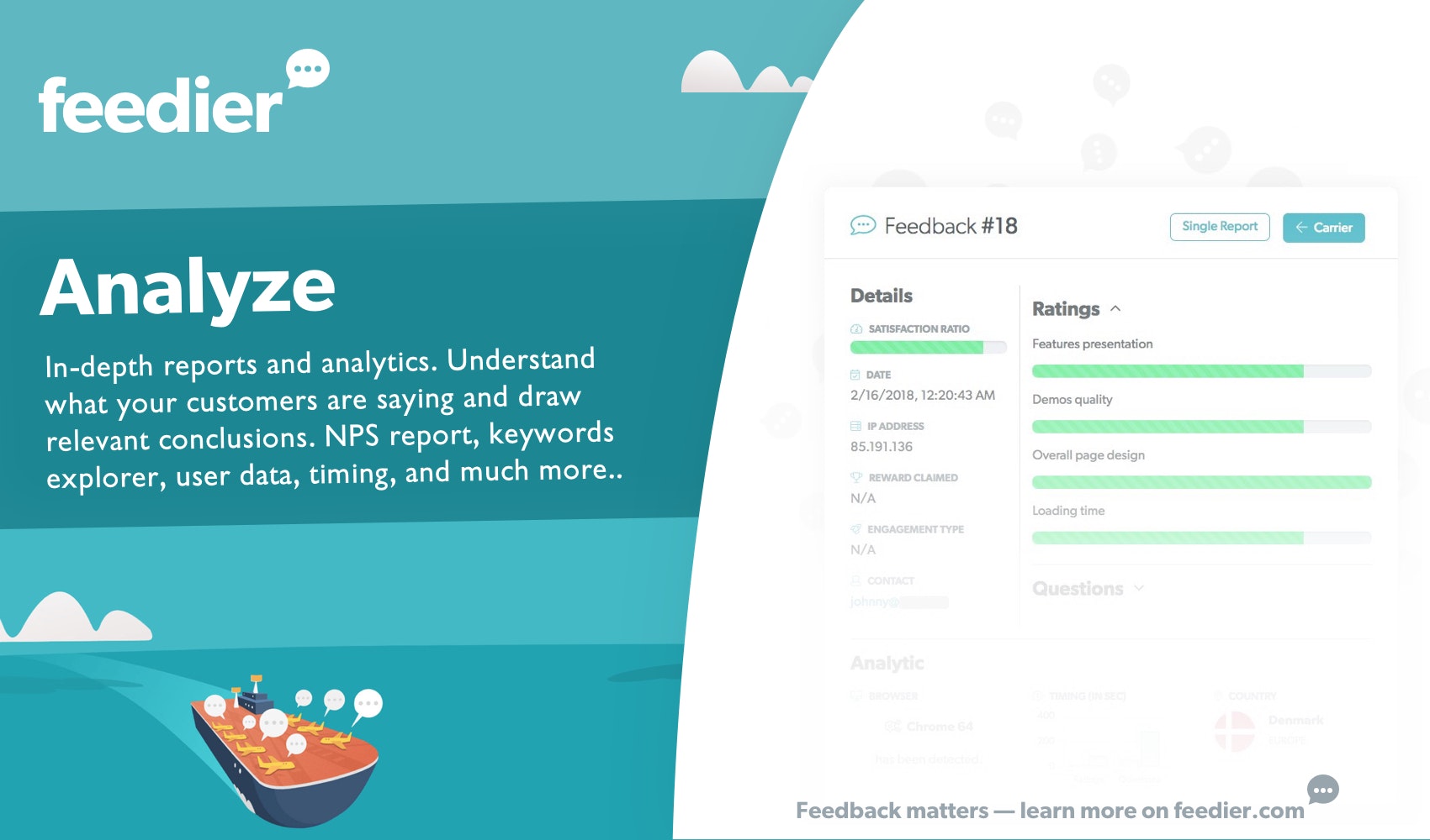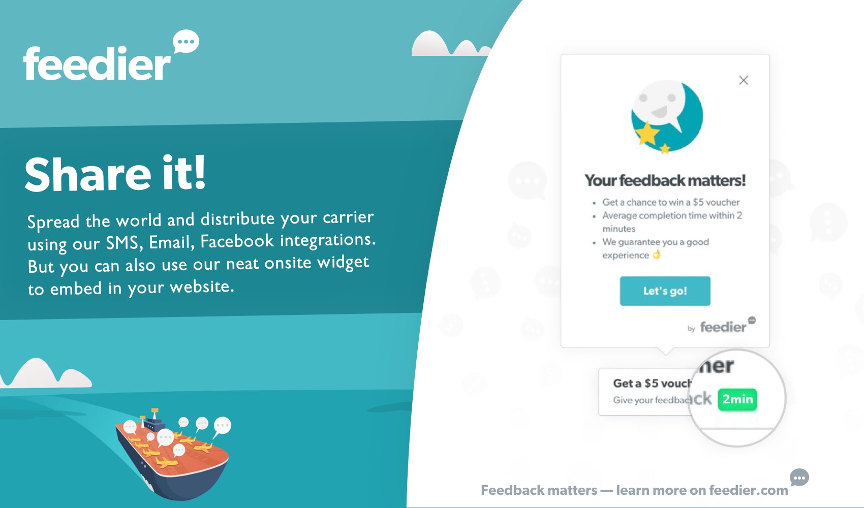 Feedier lets you collect valuable feedback from your customers through an enjoyable experience. Reward your customers for their precious time, engage with them and get valuable insights.