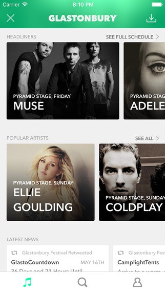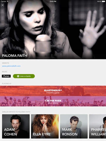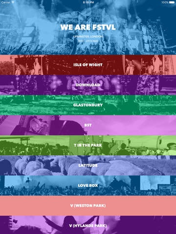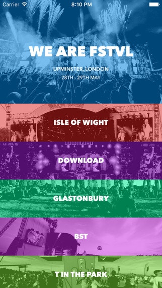 I like the idea of this app, but the app is a little too complicated. The home screen displays a list of festivals, why not have the home screen a list of festivals I am attending instead. Displaying the entire list is too much to scroll through each time. Also the line up appears to be incomplete.