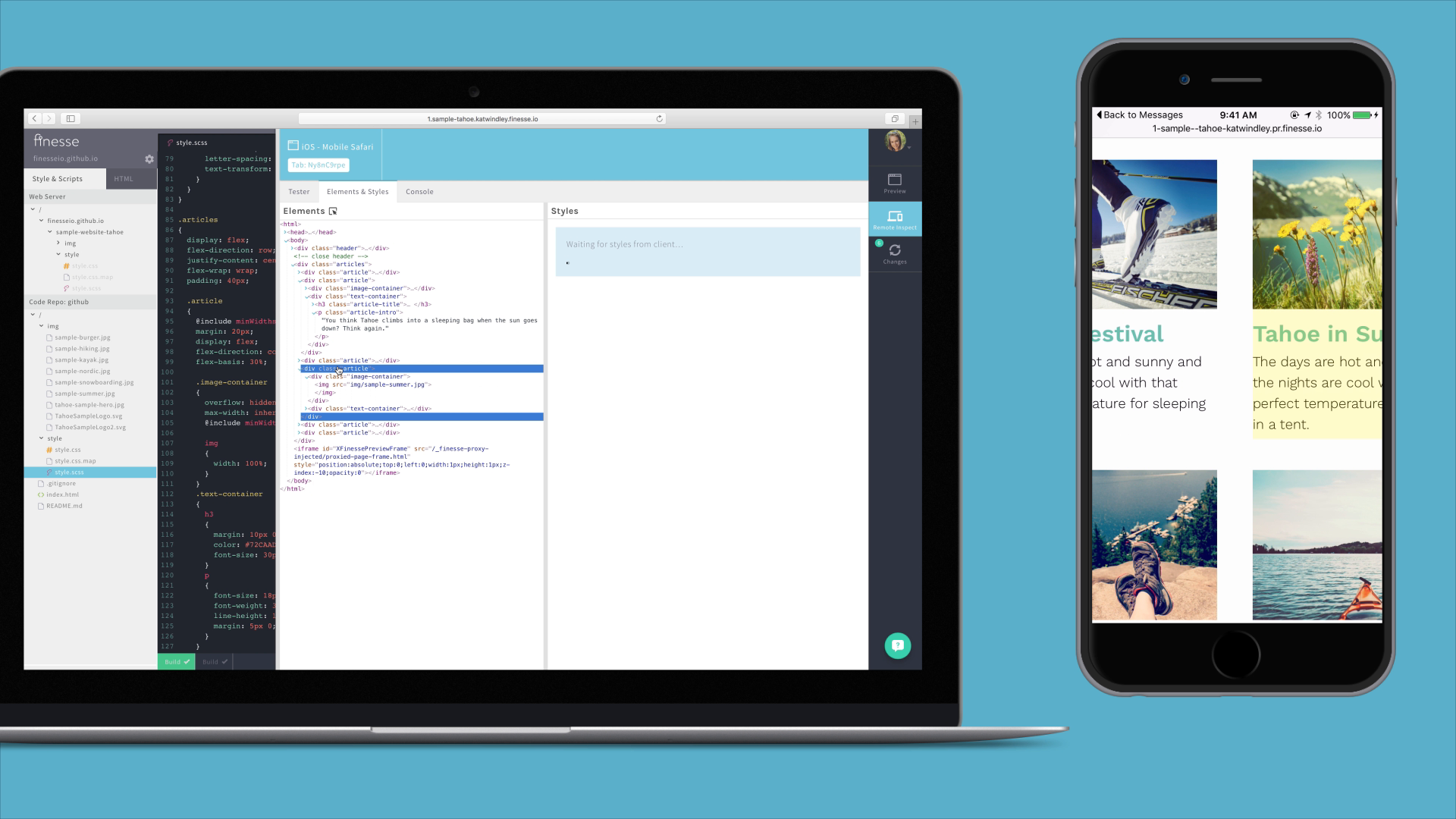 I'm one of the makers of this, and happy to answer any questions you may have. Finesse is a front-end code editor and inspector for entire websites - new or existing. It has built-in tools that can inspect remote devices, live-reload whenever you save, and supports editing standard html, css, images, etc or works with all preprocessors (Sass, Gulp, React + W… See more