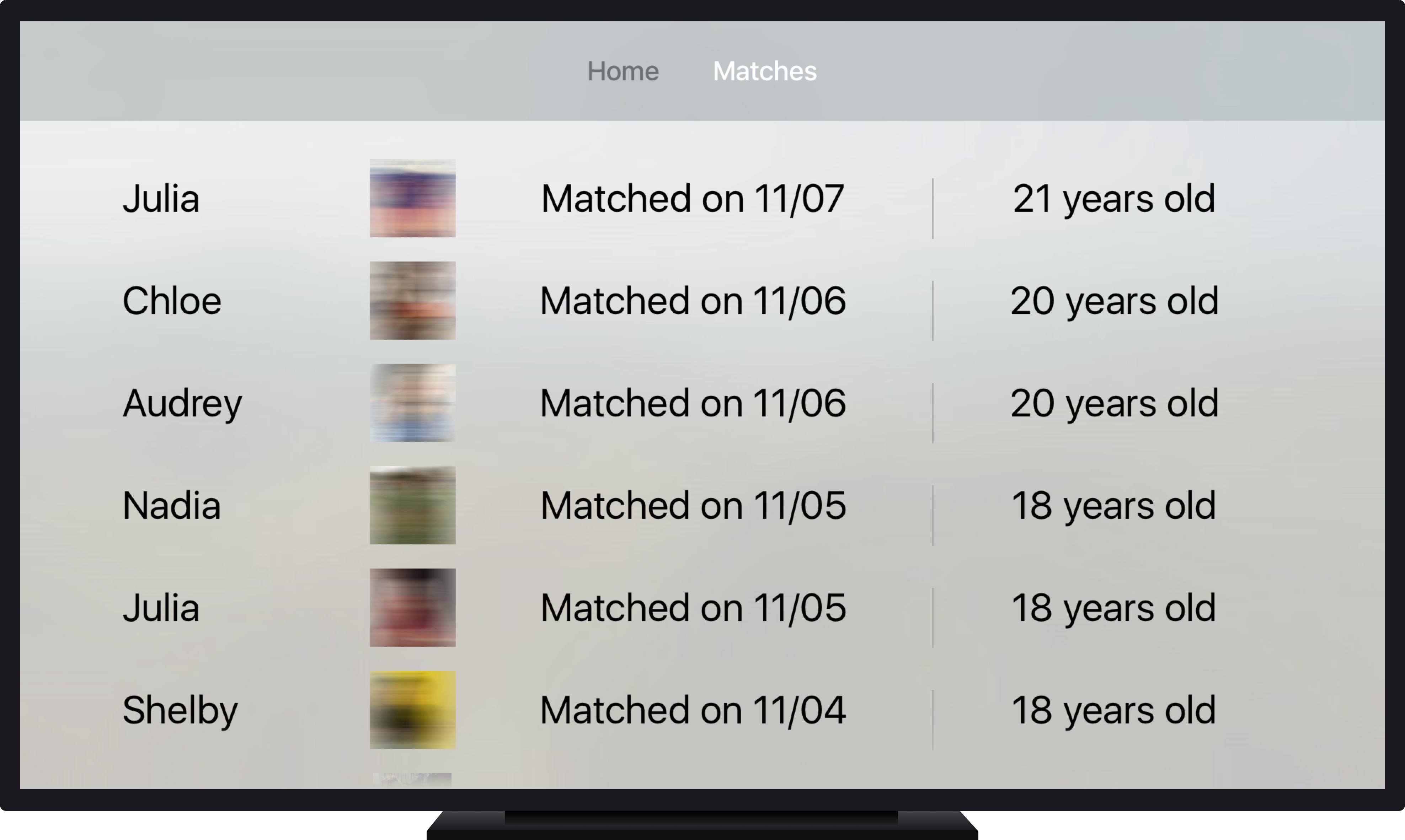 @eighttwo_three It's a completely different experience. You get so much more info about the person, you can see all their photos, their bio, their age, everything on one big screen... and it's also just really addicting to swipe on the new Apple TV remote :)