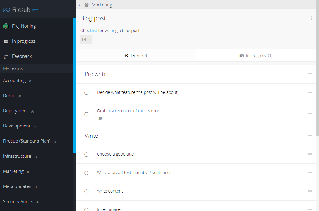 For the last year or so I’ve been building a checklist management app for teams called Firesub.