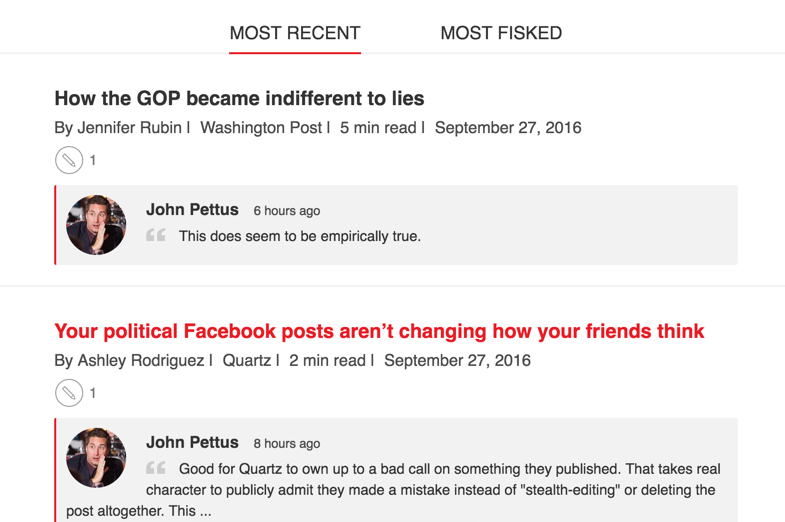 Fiskkit was designed from the ground up to build a better discussion online - one that favors facts, logic and civility. (I know. That the opposite of today.) We do that by turning Discussion into Data so we can Do Something.