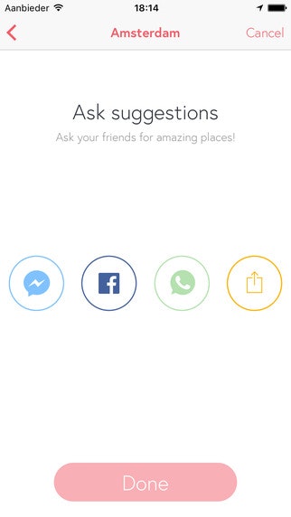Flamyngo's pretty designed app lets you create a city guide as either a map or list. The idea is to ask your friends suggestions what to visit (bars, restraurants, etc.) and it pops-up on your list without them having to sign up for anything, only using a whatsapp/messenger link you share.
