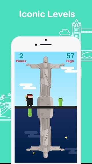 - Tap on the screen to flick the ninja up and down.