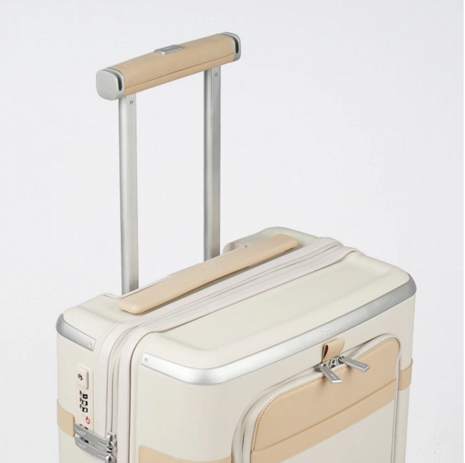 I'm starting to see smart handles, charging, tracking, and other features like that more often. And that's great! But what stood out to me was the suspension system for the wheels. Seeing it happily absorb the bounce from being dragged down stairs was impressive.