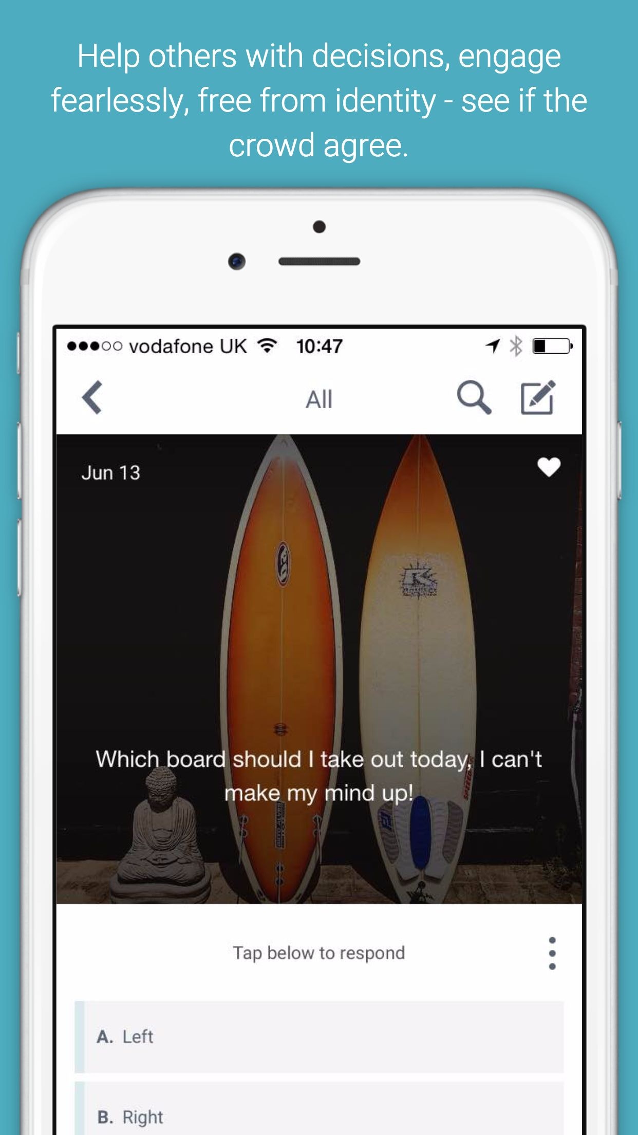 I think it's important to point out this is foremost a decision-making app, not simply one to gather and offer opinion (hence our tagline, Everyday Decisions, Made Better).