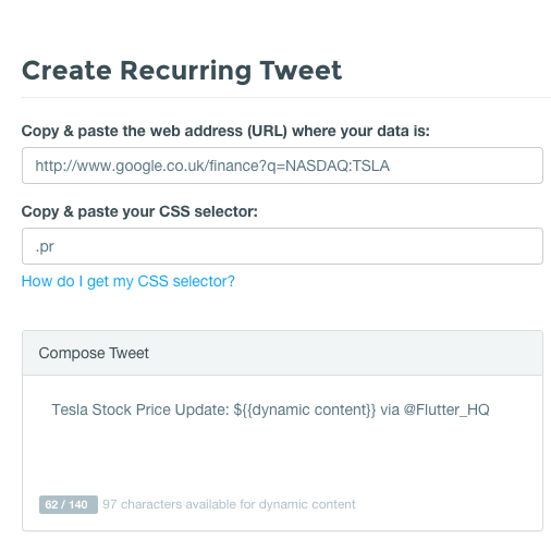 Flutter makes it possible to tweet out, on a recurring schedule, any dynamic content on the web. On a previous project, I wanted to automatically tweet out the oil price on a recurring schedule. Yes, I could have built a one-off solution for this but I thought it might be cool to make it a generic reusable tool. I think it has some potential as a ty… See more