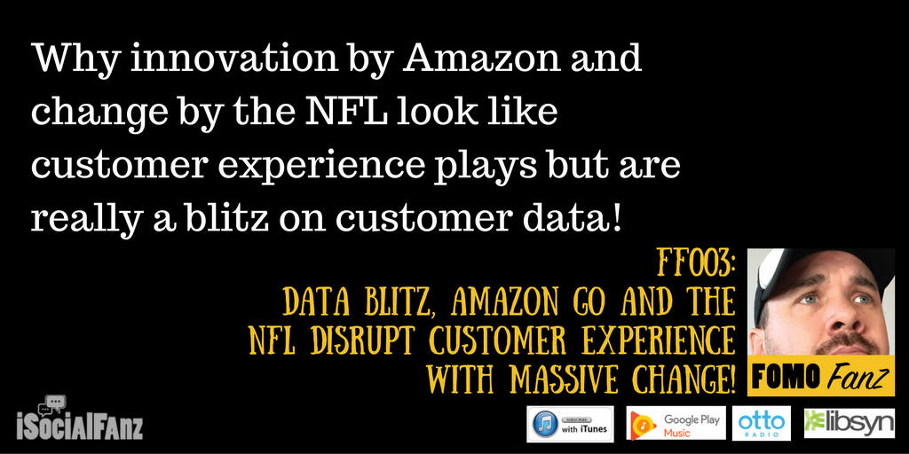Disruption and change are exciting if you’re able to understand the key elements of change and what new opportunities are now going to be possible. On this episode of FOMO Fanz I discuss change and innovation news shared by two big brands, Amazon and NFL. While many will focus on the jobs it will eliminate or the disruption these changes will cause, I beli… See more