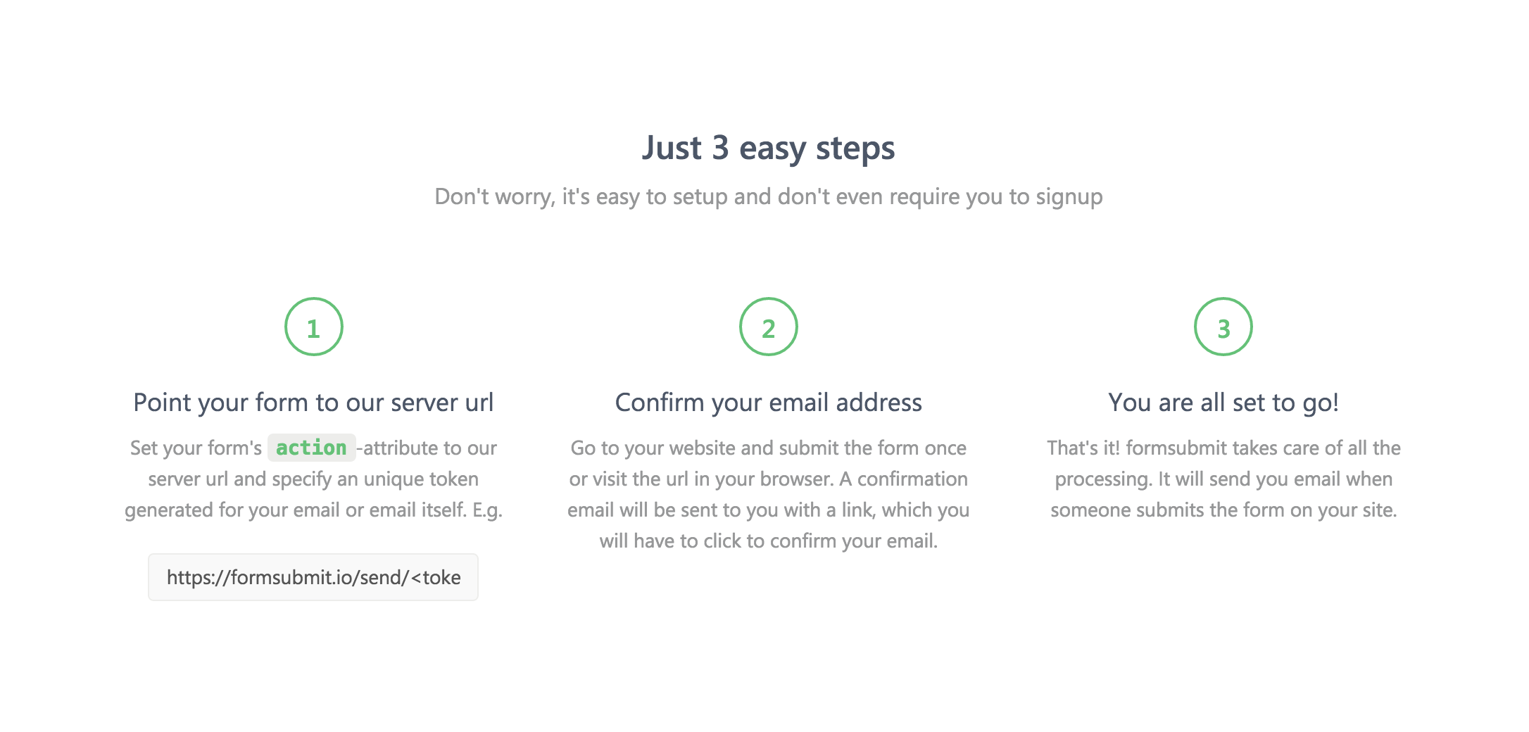 Formsubmit sends all your form submissions on your website to your email without having a need for any coding or custom solution at all.