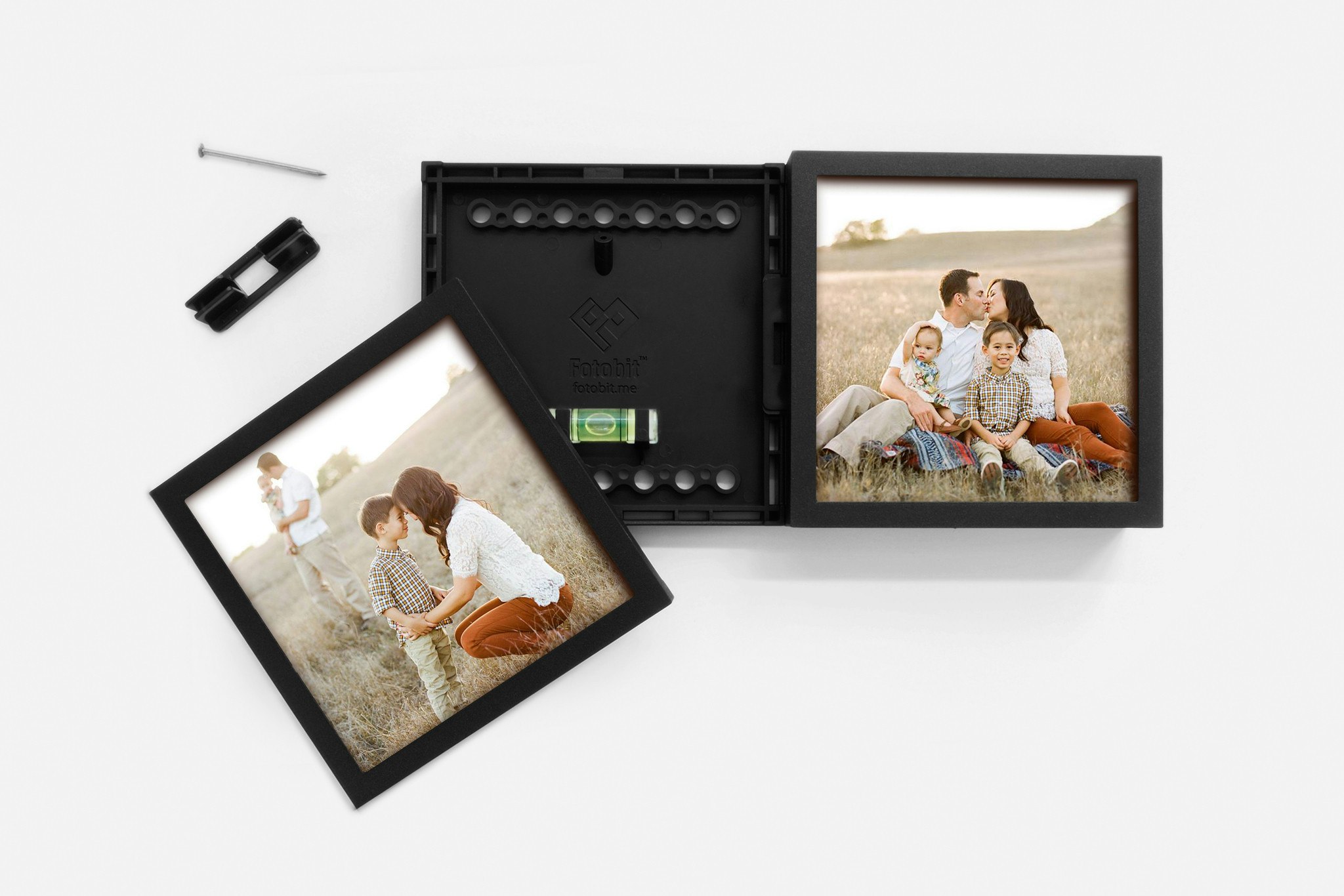 Fotobit is a patent-pending modular frame system designed to display memories captured digitally and bring them to life as wall art.