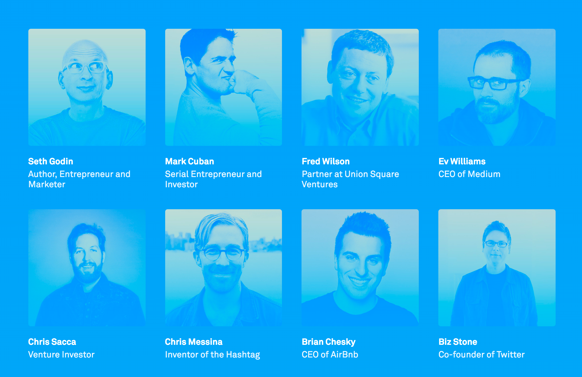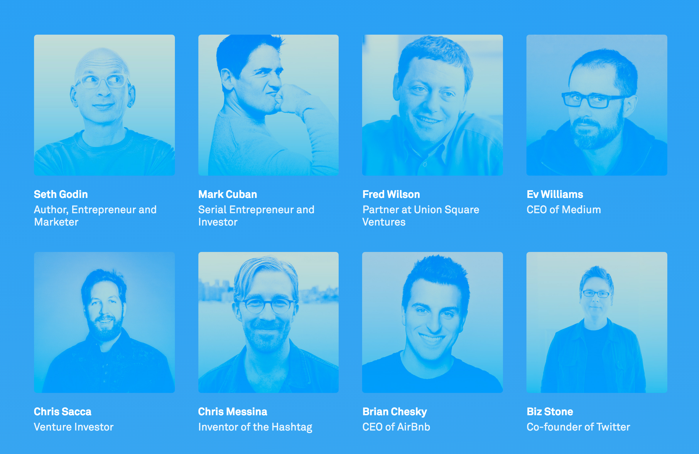 Of course huge thanks goes to @thisissethsblog @mcuban @rrhoover @fredwilson @ev @chrismessina @sacca @brian_chesky @biz @joelgascoigne @sivers @davemcclure @dhh @randfish @awilkinson @sco… See more