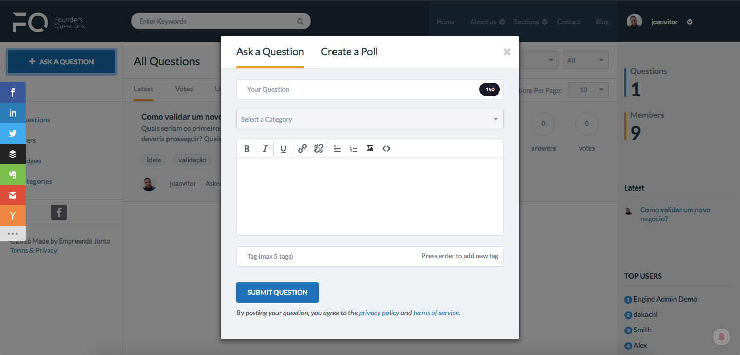 Hey, I'm the founder of Founders Questions. I've been working with entrepreneurs for quite some time now, and recently, I really felt like there's no good online platform for hustles and business persons share questions and advises about business.