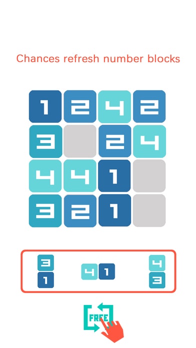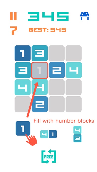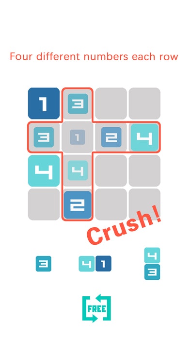 Place those given number blocks into 4 by 4 grids, fill out an entire vertical or horizontal line. When four different numbers in each line, all number blocks go crush!