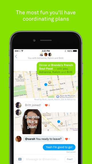 The Ugly: I think there is a good reason why apps like Red/Green, Status and others have failed to make real headway in solving the problem of getting people together: broadcasting generally is too impersonal for people to feel included. It works for close friends that you know are always down to see you, but for acquaintances and people you're just getting to know it's pretty awkward to invite yourself along/join the chat. There's also an awkwardness about posting your plans publicly: either your signalling that you want to do something but don't have (enough) people already to make it fun; Or, on the flip side, your announcing to everyone that you have plans and aren't interested in hanging out with anyone else. At the end of the day I'd rather just text those people I want to hangout with directly than worry about a whole pack of new social norms.
