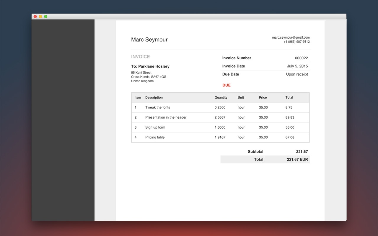 If you are freelance developer, then this tool is useful for tracking time for hourly billing and sending invoice. Excellent work by @ndmitry