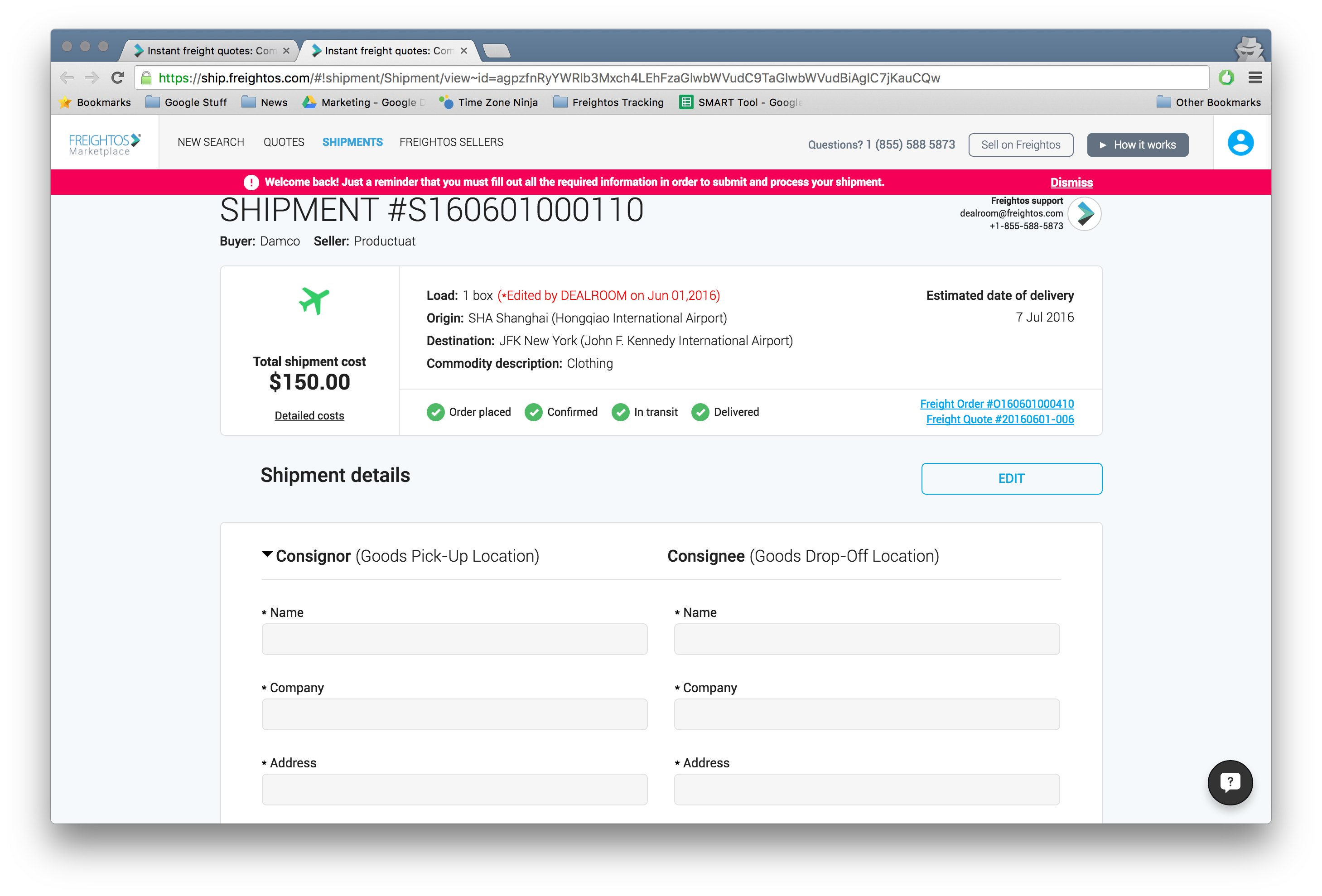 Freightos is an online marketplace for international freight, where you can instantly compare air, ocean and trucking freight quotes from multiple providers, book them online and manage shipments. $19 trillion dollars worth of goods are shipped around the world (💰💰💰) annually but it takes days to get freight quote… See more