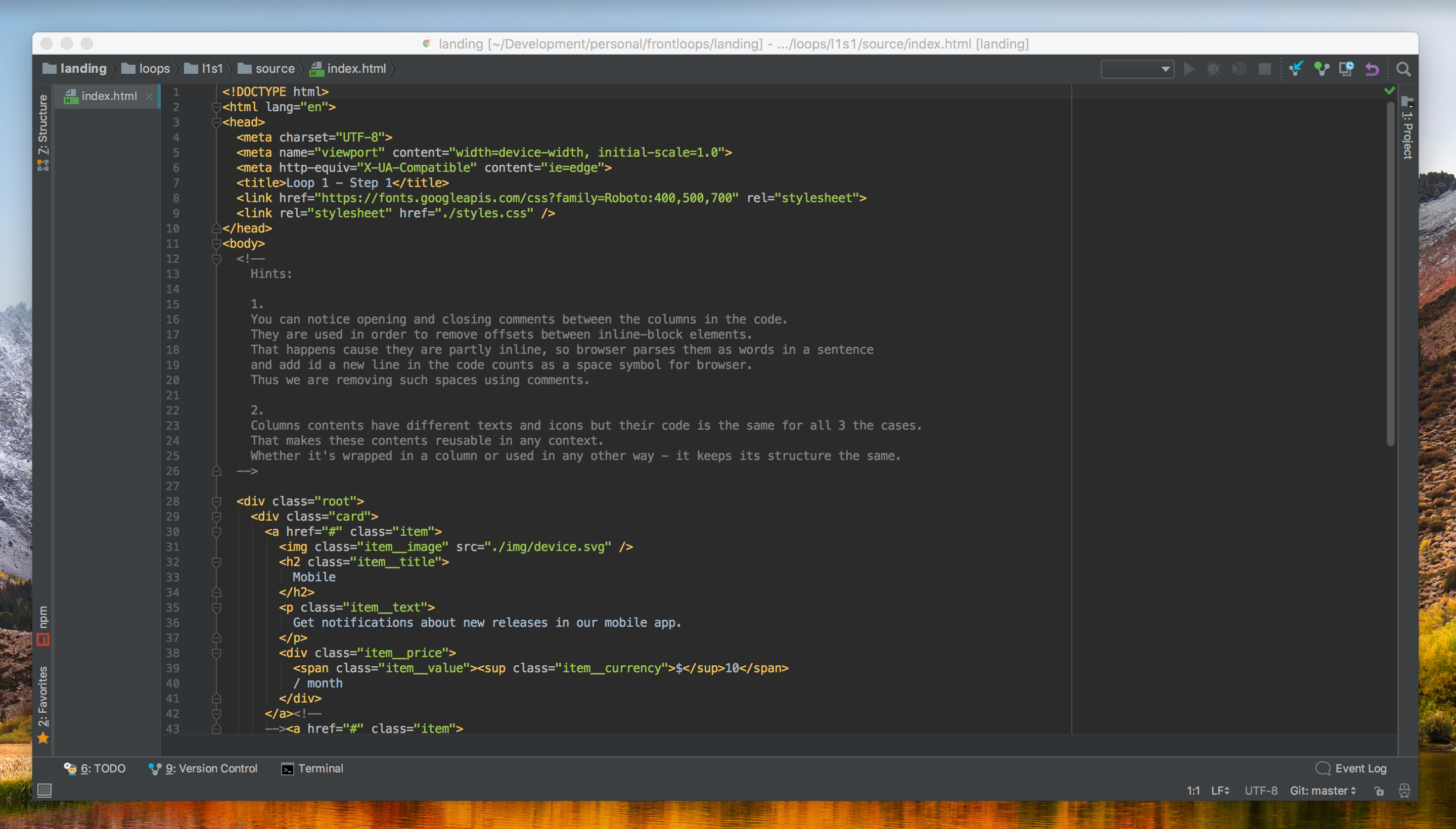 The main idea behind the project is that lots of developers and coding designers learn html/css quickly and then switch to javascript. However, from my experience, it's really important to understand how to write scalable html/css code and know some tricks for better velocity. And the best way to learn besides reading theory is always trying to solve real tasks. That's how Frontloops popped into my head and in couple of months - I've got 30 tasks ready that get harder eventually with 3 full-page challenges.