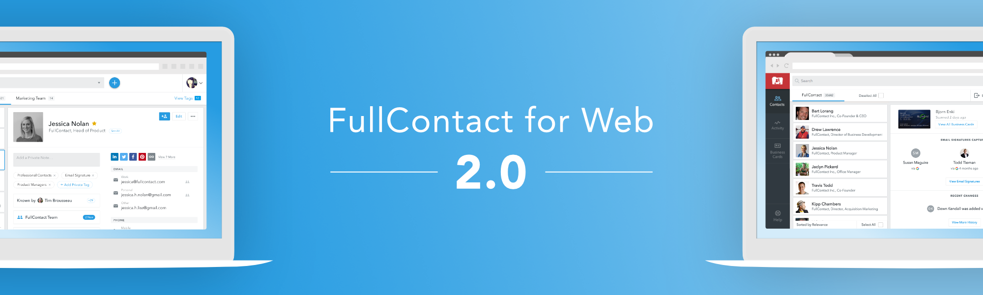 Hi, everyone - it's been a long time coming, and today we're thrilled to let you all experience the new FullContact for Web. We've completely rebuilt the app from the ground up with new features, an improved interface, and a ton of backend improvements that make it lightning fast.
