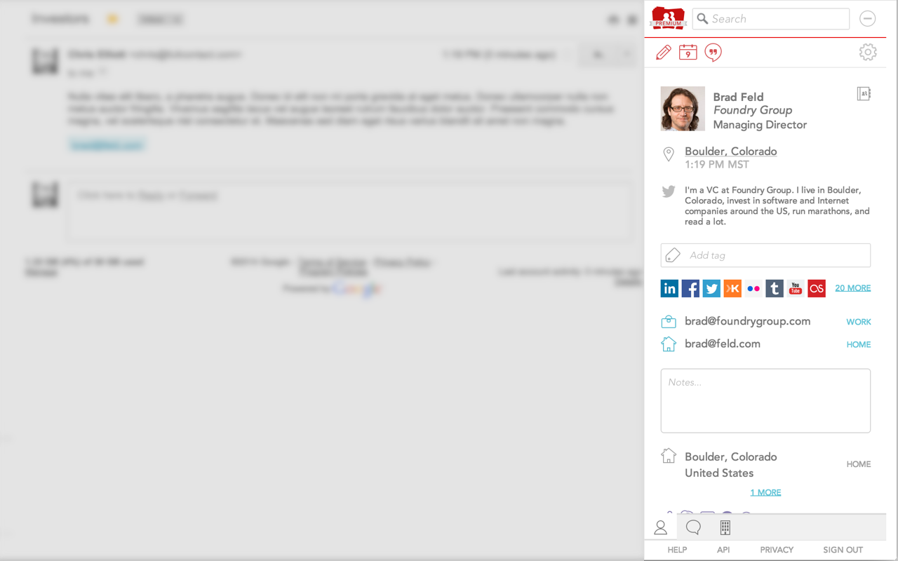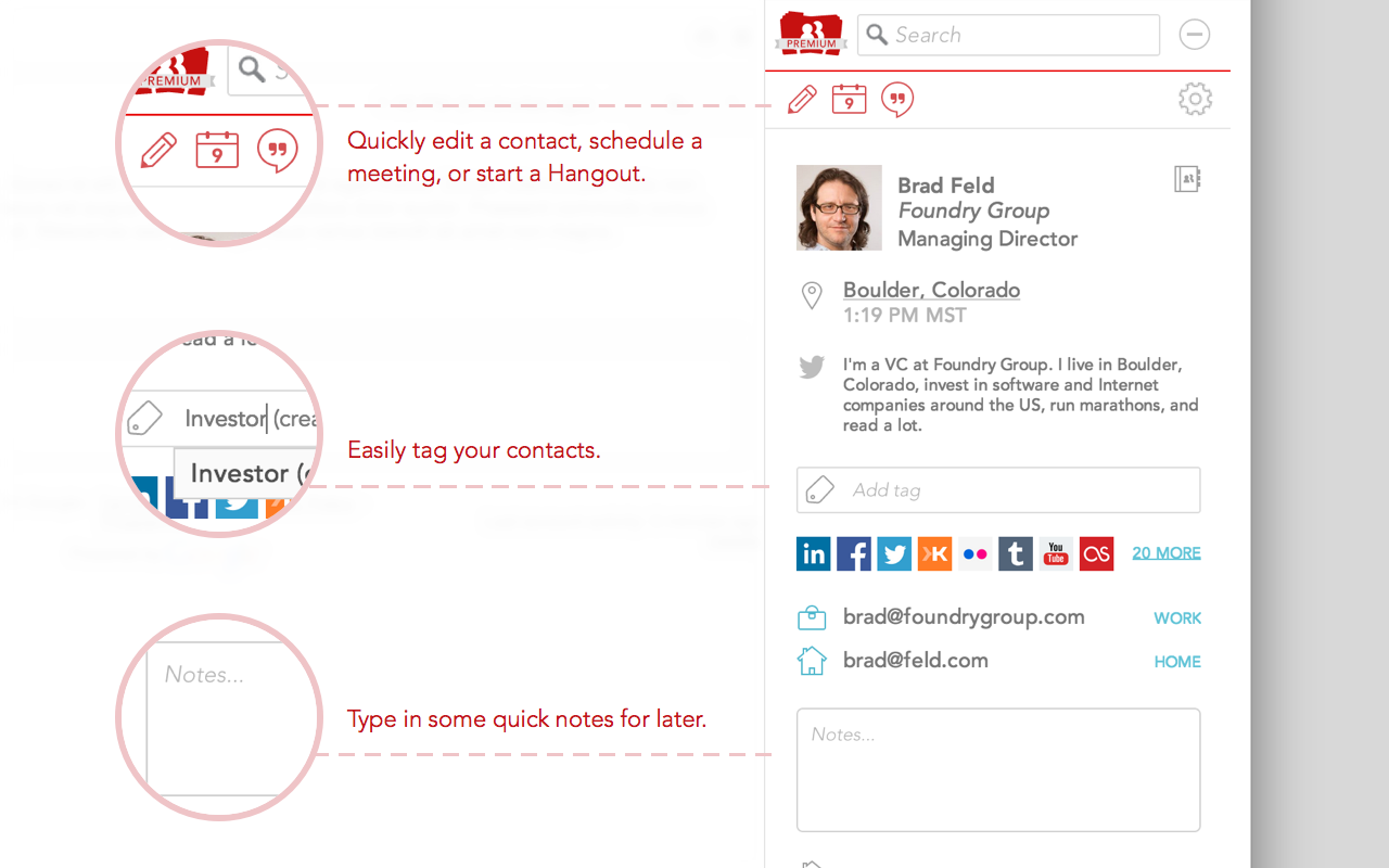 Interesting product - assuming that the intent here is to replace the rapportive-style right rail. Some general product conversation: