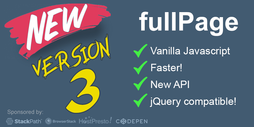 fullPage 3.0 is the brand new and fully rewritten version of the fullPage library.
